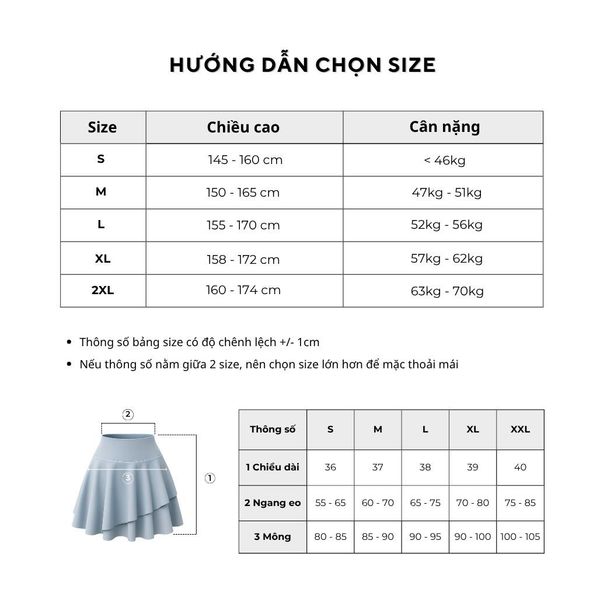 Chân váy 2 lớp để tập Gym, Yoga, Zumba,aerobic,Golf, Tennis,Cầu lông hoặc chạy bộ thể thao đều rất thoải mái.