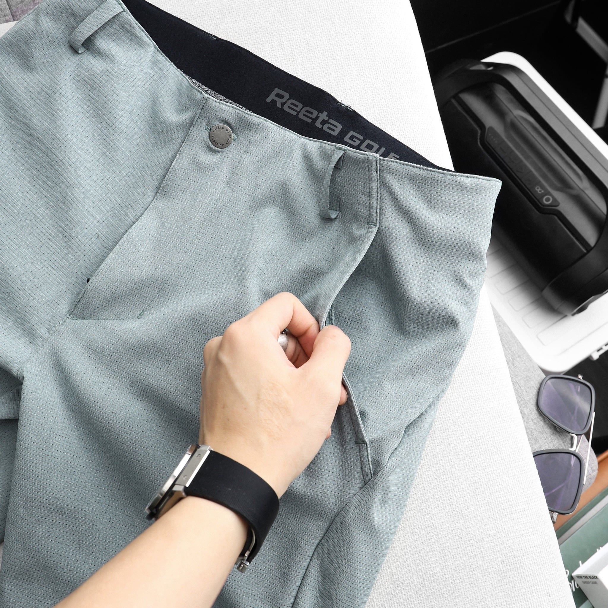 Quần sử dụng lưng đai chun co giãn thoải mái.